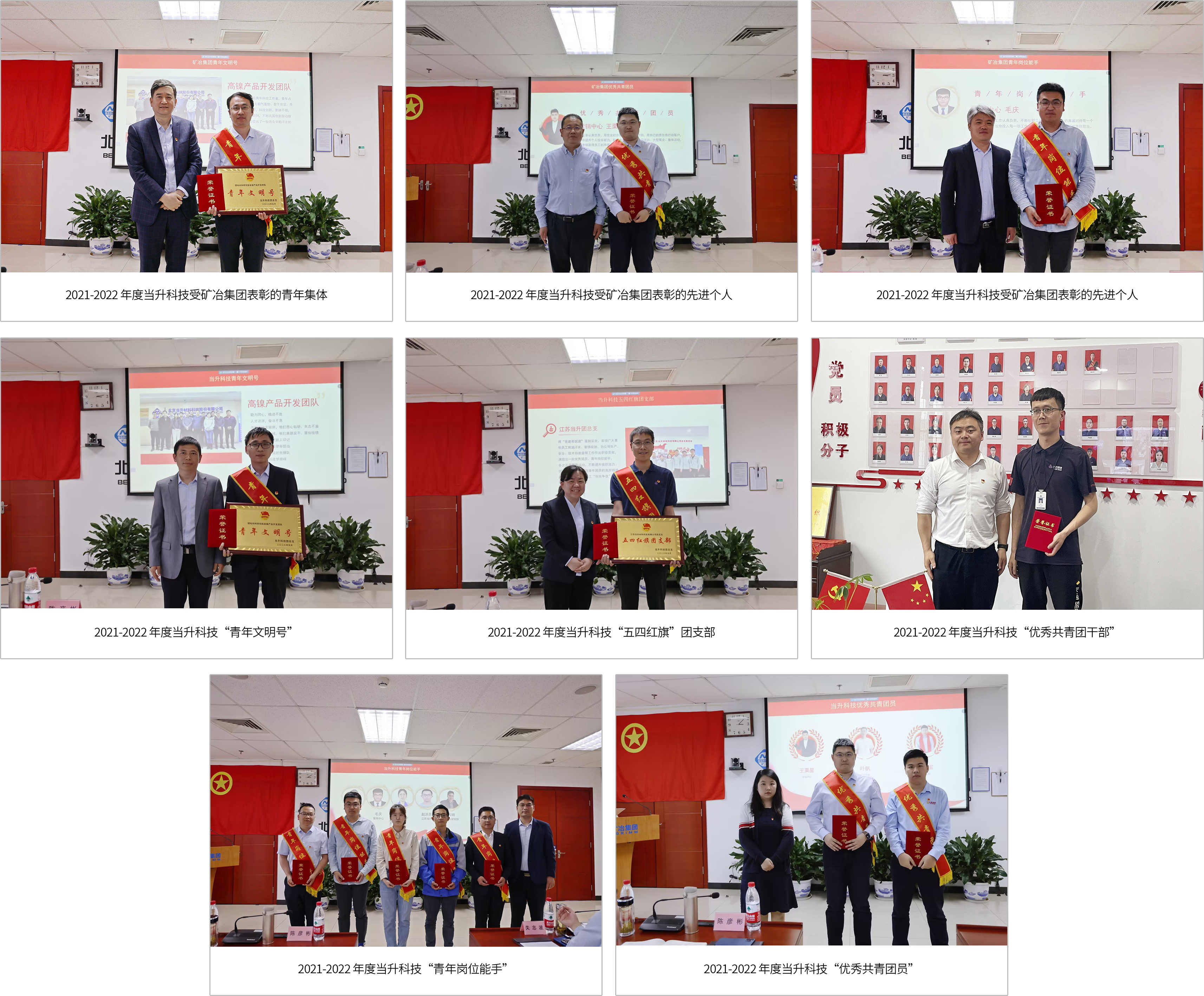 会上宣读了优秀集体和个人名单,并向获奖代表颁发了奖牌和荣誉证书。2021-2022年度,先后有2名个人、1个集体荣获矿冶集团表彰;有2个集体、9名个人荣获公司表彰。