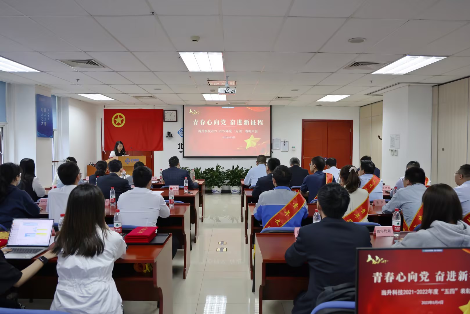 会议在《何以青年》的激昂旋律中圆满落幕。公司管理层、党委办公室、人力资源部负责人,受表彰的优秀集体和个人代表,公司团总支委员及二级单位团组织委员、团员青年共70余人参加会议。